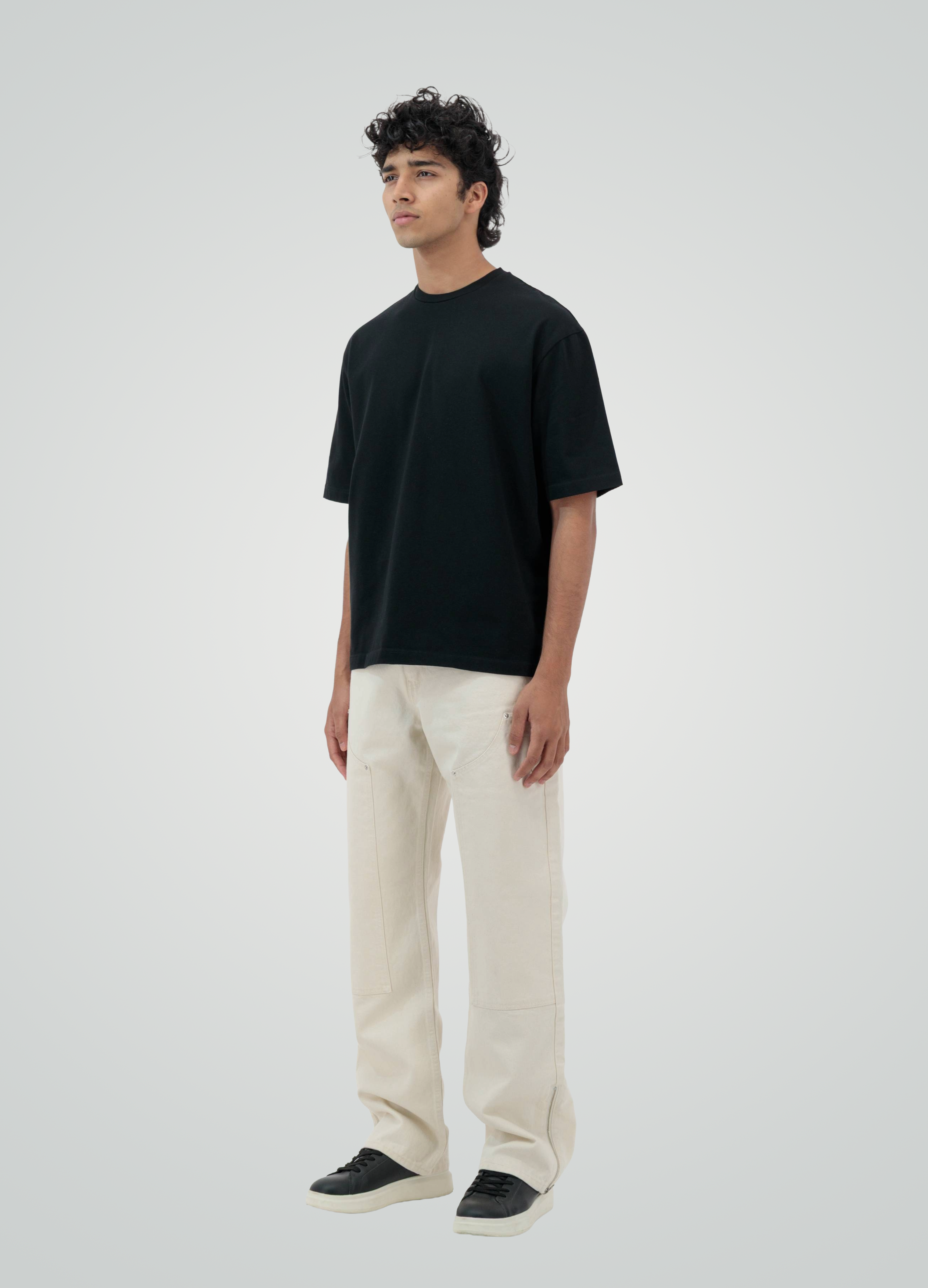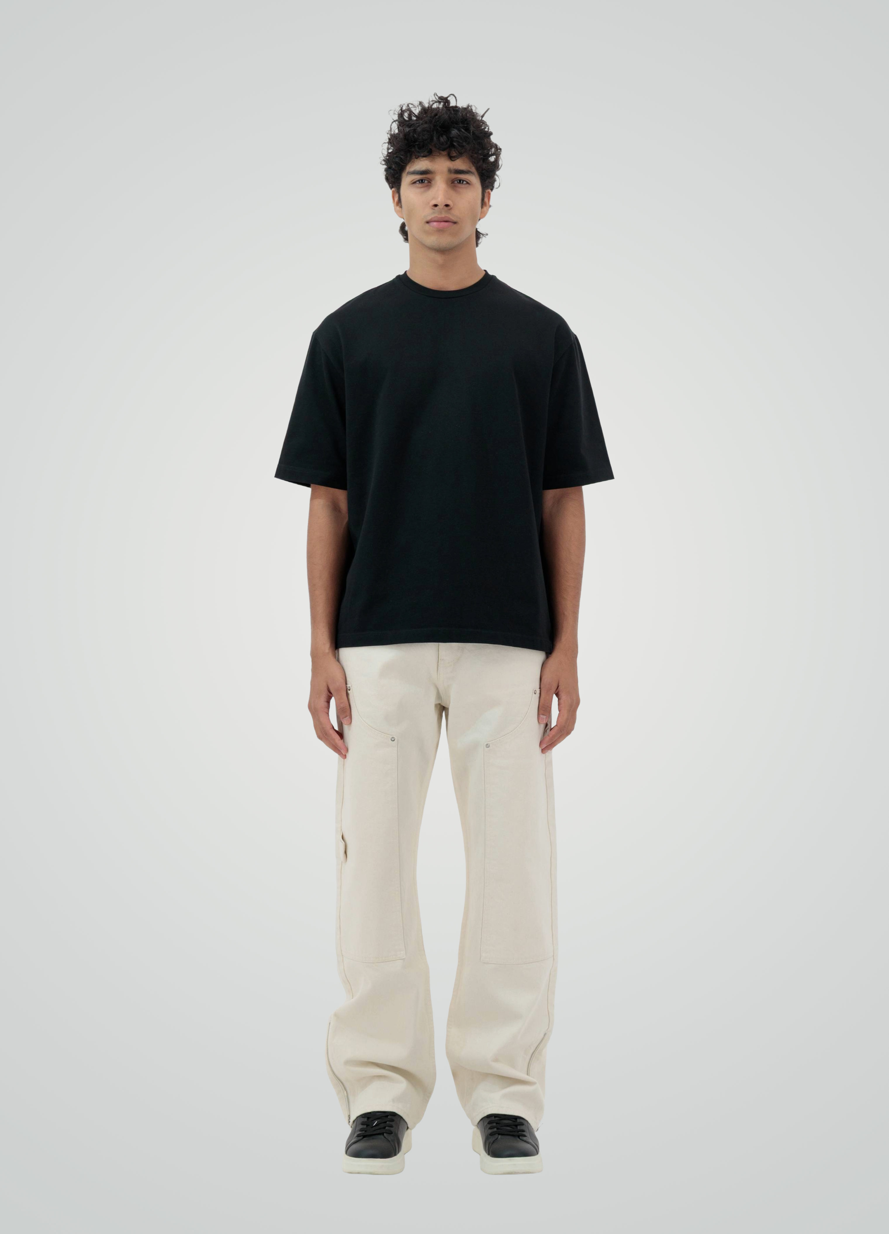 Crafted from heavyweight cotton denim, these oversized carpenter pants feature monogram embroidery and zippered hems for a customizable fit. Built for versatility and edge.
